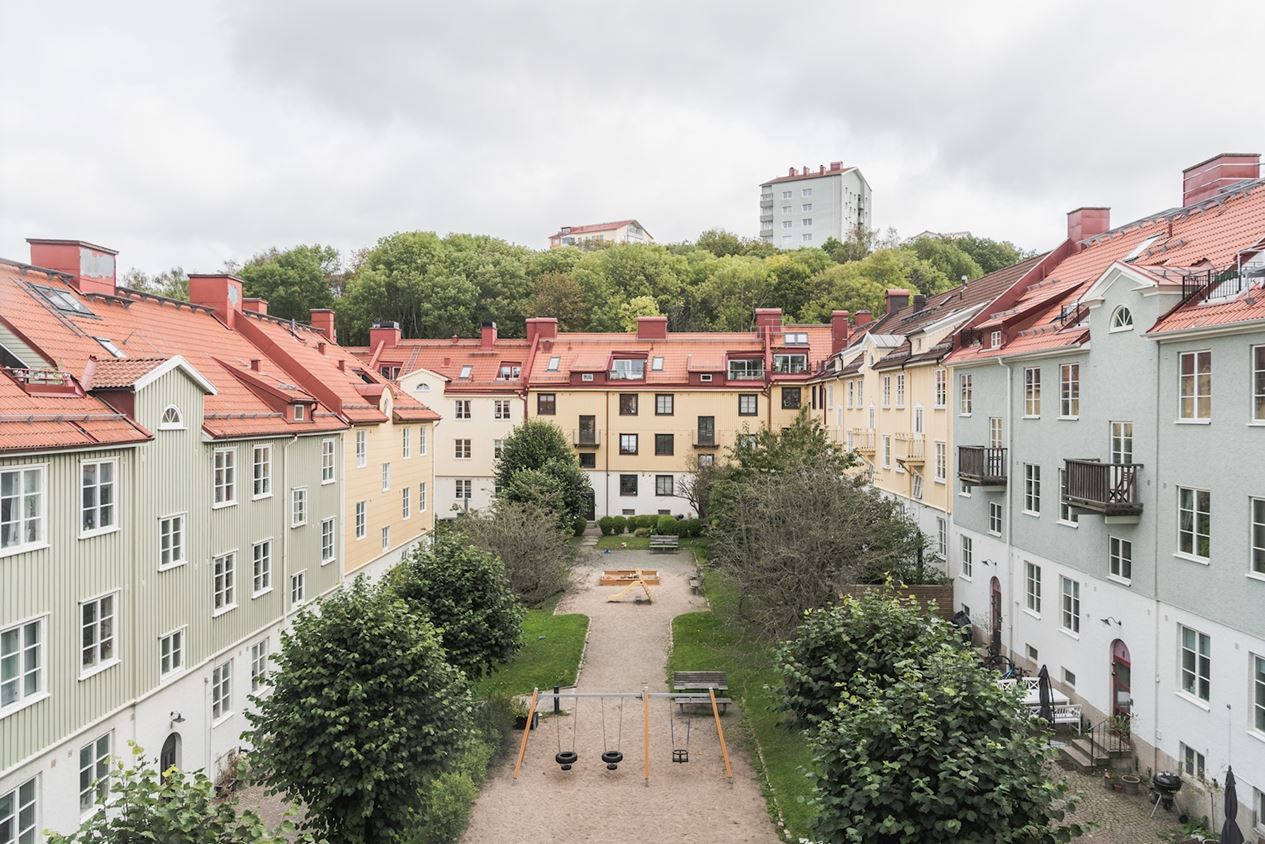 Nere på föreningens mysiga gatstensbelagda innegård finns uteplats med två grillar, utemöbler vid varje trappuppgång och en fin lekplats för barnen att nyttja. Kommer du med cykel finns cykelställ på gården och även i källaren.